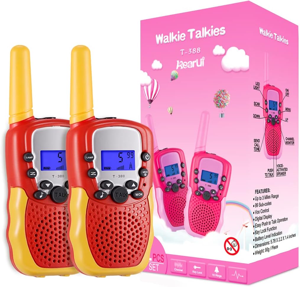 Kearui Walkie Talkie Ninos 2 Pack Walkie Talkie Para Ninos 8 Canales Lcd Pantalla Vox Larga Distancia 3km Linterna Incorporado Juguete Regalos Para Ninos De 3 12 Anos Amarillo Amazon Es